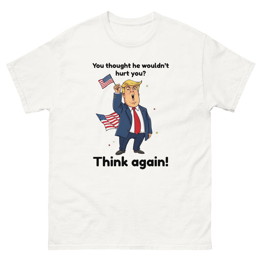 Funny Political Trump T-Shirt – Anti-Trump Satire Tee, "You Thought He Wouldn’t Hurt You? Think Again!" Political Humor Shirt